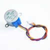 28BYJ-48 is the most commonly used stepper motor because of its compact size, 5V power supply (that can be provided by any controller), and a high level of control. It has a stride angle of 5.625°/64, hence it will make 64 steps to complete one rotation (as every step covers 5.625) so it has a high level of control. This stepper motor has 4 coils unipolar arrangement (as it is 4 phase motor) and each coil is rated for +5V power supply so it can be controlled easily controlled by any microcontroller.