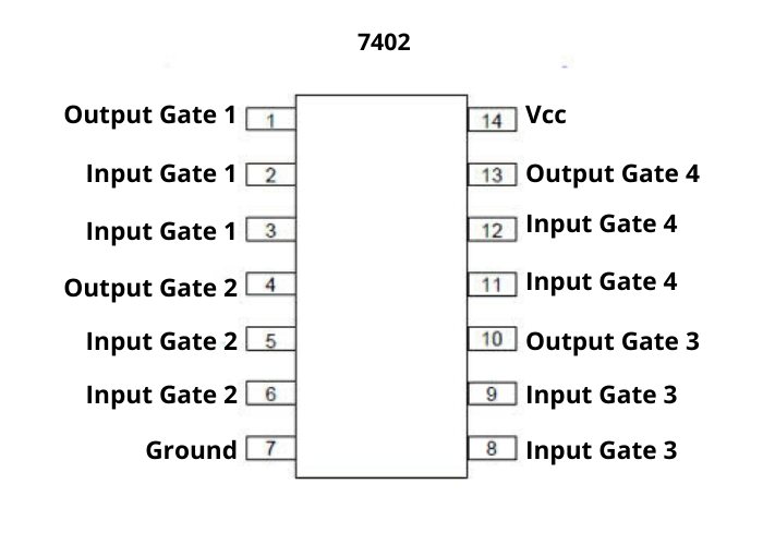 7402 is a NOR gate IC, functionality is opposite to OR. the IC belongs to 74 series gate IC family. IC 7402 has 2 input NOR gate and 4 such circuits in one IC package. the IC has a lead-14 pin DIP tube type package.