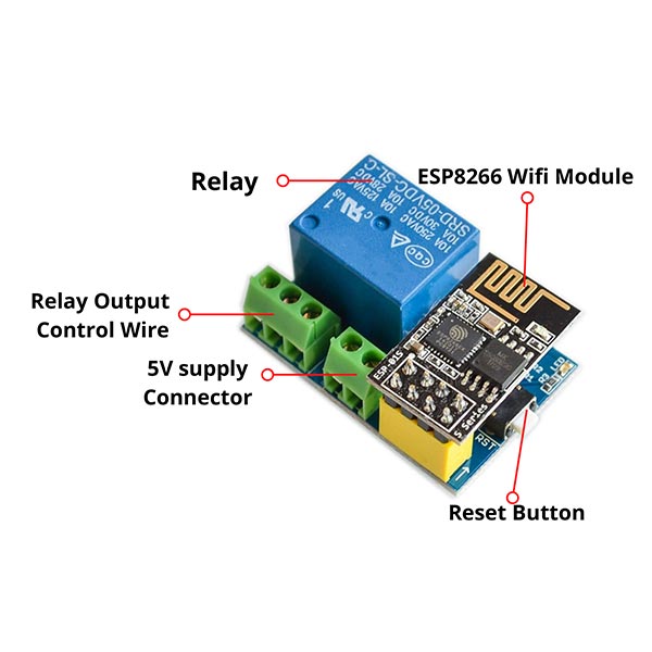 This 5V 1 channel relay module is based on the ES8266 wifi module and 8 bit MCU. the device allows you to control local area networks wirelessly by mobile APP through a simple configuration process.