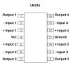 LM324 is a quad operational amplifier (OP-AMP) in one integrated circuit package and all 4 op-amps can be power by the single supply voltage. These amplifiers can operate from 3V to 32V and differential input voltage can be equal to the voltage supply.