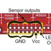 Each phototransistor in the module is followed by a pull-up resistor that forms a voltage divider and produces an analog voltage output between 0 to 5V as the function of the reflectance sensor. All the outputs are independent but LEDs are paired to halve the current consumption. The LEDs are controlled by MOSFET with a gate normally pulled high that allows LEDs to turn off by setting the MOSFET gate at low voltage.