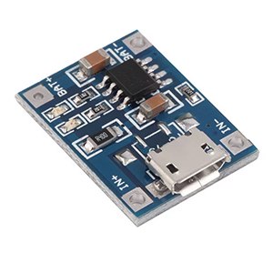 Module Li-Ion Battery Charging/discharging module Chip TP4056 Number of cells suitable Single Cell Dimension 17mm x 21mm Input Voltage: 4.5V to 5.5V Full Charge Voltage 4.2V Charging Current Adjustable 1A Charging Precision 1.5% Operating Temperature -10’C to +85’C Application Portable devices
